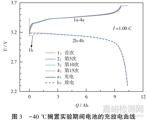 本文作者對-40℃擱置后的鋰離子電池進行充放電,重復 15 次操作,研究低溫擱置后的老化行為及內(nèi)在機制。