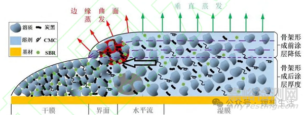 圖2 鋰電池負(fù)極極片涂層邊緣區(qū)域干燥開裂機(jī)理示意圖