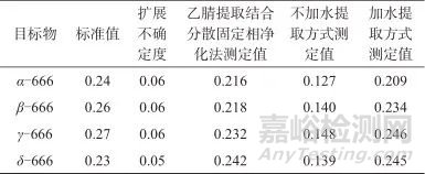 表2 不加水取方式和加水提取方式回收率測定結(jié)果