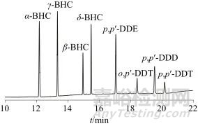 α-六六六(α-BHC)、β-六六六(β-BHC)、γ-六六六(γ-BHC)、δ-六六六(δ-BHC)、滴滴伊(p,p′-DDE)、o,p′滴滴涕(o,p′-DDT)、p,p′滴滴滴(p,p′-DDD)、p,p′滴滴涕(p,p′-DDT)標(biāo)準(zhǔn)溶液:質(zhì)量濃度均為100 μg/mL,介質(zhì)為正己烷,上海安譜璀世標(biāo)準(zhǔn)技術(shù)服務(wù)有限公司。