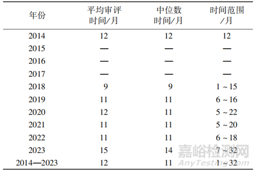 ▲表1-2014-2023年附條件批準(zhǔn)上市品種/適應(yīng)證審評(píng)審批時(shí)間情況