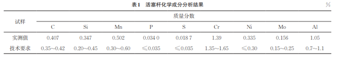 在斷裂活塞桿上截取試樣,用直讀光譜儀對試樣進行化學成分分析,結(jié)果如表1所示。由表1可知:活塞桿的化學成分符合技術(shù)要求。