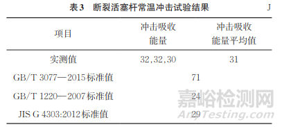 對斷裂活塞桿取樣,對試樣進行常溫拉伸試驗、沖擊試驗和硬度測試,結(jié)果如表2~4所示。