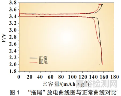 綜上所述,放電曲線異常的磷酸鐵鋰通過氮氣條件下600℃高溫處理,3.3V到2.0V放電平臺占比由11.18%下降為8.1%,并且充電比容量由152.47mAh/g上升為158.48mAh/g,放電“拖尾”的現(xiàn)象消失。