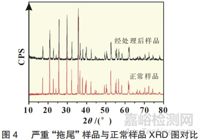 針對此現(xiàn)象,我們將以上經(jīng)180℃高溫高濕處理,0.1C放電曲線已形成嚴(yán)重“拖尾”后的樣品與正常的磷酸鐵鋰樣品進行XRD分析對比。經(jīng)比對(見圖4),已發(fā)生異常物料測試結(jié)果與正常LFP并無特別顯著的差異。我們分析,該現(xiàn)象可能為水分與LFP表面產(chǎn)生了某種較微弱反應(yīng),導(dǎo)致產(chǎn)品性能變化,XRD分析難以識別。而該微弱反應(yīng)是否可逆,我們進行了繼續(xù)的探究。