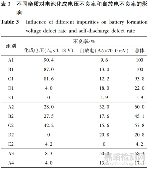 2.2 鋼殼內(nèi)雜質(zhì)對電池自放電的影響