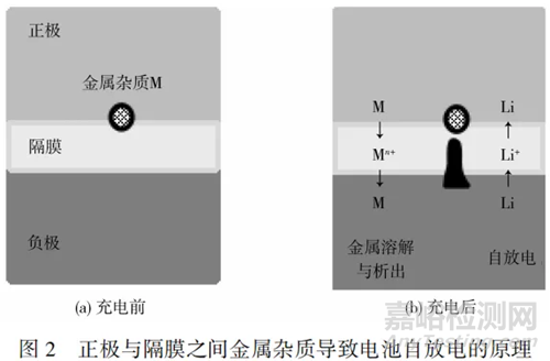 引起電池自放電的因素有很多,包括設(shè)計、材料、生產(chǎn)環(huán)境和生產(chǎn)加工過程等,其中生產(chǎn)加工過程中引入的粉塵、毛刺或金屬雜質(zhì),是導(dǎo)致電池自放電的主要原因,尤其是金屬雜質(zhì)。