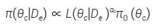 其中C(α0)=1/∫L(θc|De)α0π0(θc)dθc。MPP 分母中包含積分項,大多數(shù)情況下幾乎不可能推導(dǎo)出該積分的解析表達式,采用馬爾可夫鏈蒙特卡洛采樣(Markov chain Monte Carlo,MCMC)時計算復(fù)雜度和耗時都較高,影響了實用性和效率。對此,Gravestock和Held[11] 提出了一種經(jīng)驗Bayes(Empirical Bayesian)方法來確定冪參數(shù),其核心思想是尋找使得冪參數(shù)的邊際似然函數(shù)達到最大的α0,即: