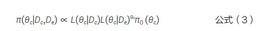 穩(wěn)健混合先驗(robust mixture prior,RMP)[23] 對基于外部數(shù)據(jù)得到的信息先驗π1(θc|De)和弱信息先驗π0(θc) 兩個部分加權(quán)形成一個混合的先驗分布:
