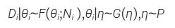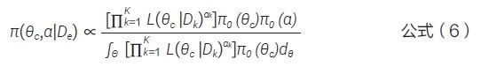 假設(shè)存在K個滿足要求的外部數(shù)據(jù),分別用D1, D2,…, DK表示K個外部對照研究中的數(shù)據(jù),記為De=(D1,…,DK)。令θ1,θ2,…,θK表示每個外部數(shù)據(jù)中感興趣的參數(shù)。假設(shè)θ1,θ2,…,θK,θc是可交換的,模型表示為: