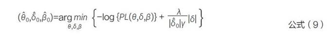 其中,θ 表示治療效應(yīng),β 表示協(xié)變量效應(yīng)。隨后基于初步估計的差異δ?0 ,動態(tài)調(diào)整模型中的正則化強度,根據(jù)目標函數(shù)估計治療效應(yīng),見公式(9)。其中,γ和λ 是超參數(shù),二者皆大于0。λ表示借用外部數(shù)據(jù)的程度,λ 越大提示懲罰越高,因此借用的外部數(shù)據(jù)越多;γ 表示借用程度對δ?的適應(yīng)程度,當漂移越來越大時,較大的γ 能夠快速適應(yīng)并降低借用度。該方法得出的治療效應(yīng)漸近服從已知分布,可以用于構(gòu)建置信區(qū)間和進行假設(shè)檢驗。