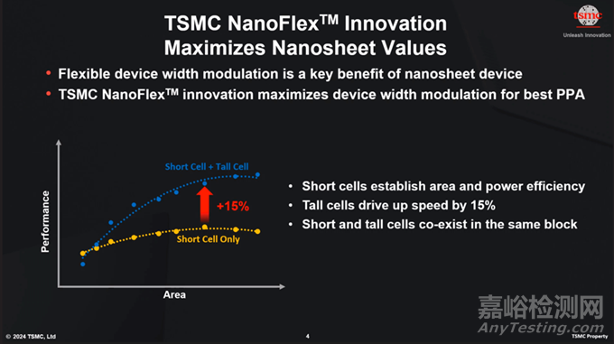 透過元件寬度調節(jié),N2搭配NanoFlex 創(chuàng)新技術可將效能、功耗、面積(PPA)的優(yōu)勢發(fā)揮到最大化。使高度較低的元件能夠有效節(jié)省面積,并擁有更高的能源效率,而高度較高的元件則將效能最大化??蛻艨稍谙嗤脑O計區(qū)塊中優(yōu)化高低元件組合,提升15%的速度,同時在面積與能源效率間取得最佳平衡。