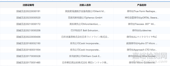 已獲批的進(jìn)口微導(dǎo)絲產(chǎn)品