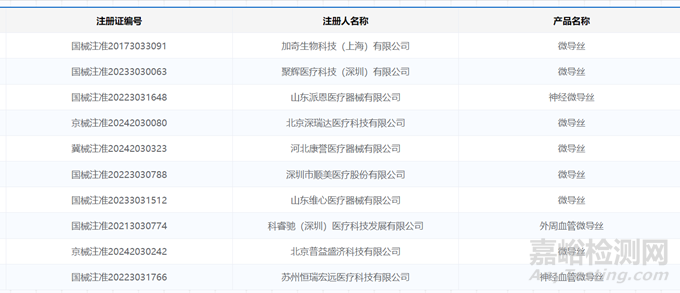 部分已獲批的國產(chǎn)微導(dǎo)絲產(chǎn)品
