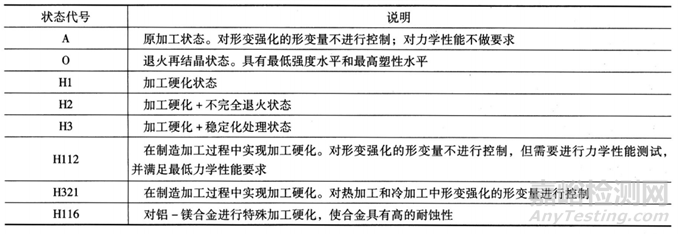 表1 形變強(qiáng)化鋁合金的狀態(tài)代號(hào)
