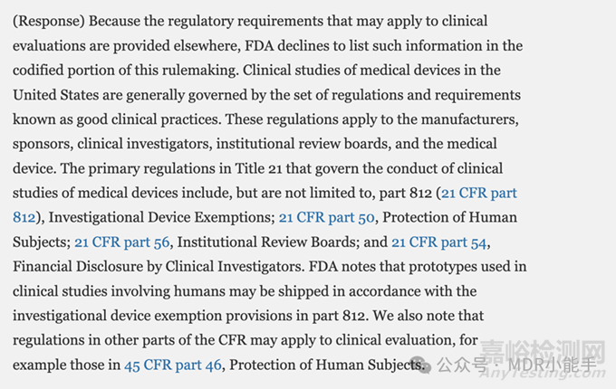 在這種情況下,F(xiàn)DA 顯然強(qiáng)調(diào)了專門與臨床研究而非臨床評價有關(guān)的規(guī)定。因此,我們可能會問:FDA 如何定義 “臨床評估”?