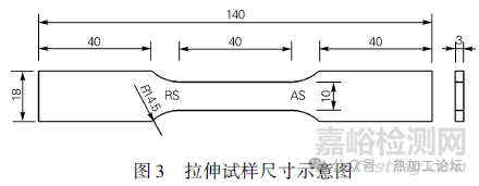 固溶處理是將合金加熱至高溫單相區(qū)恒溫保持,使過剩相充分固溶后快速冷卻,以得到過飽和固溶體的熱處理工藝。為獲得更好的性能,選擇最佳的固溶處理方案,在確定合金的固溶處理溫度后,對固溶處理時間展開研究。將鑄態(tài)合金塊采用線切割的方式加工成不同試驗要求的樣塊和拉伸試樣,拉伸試樣如圖3所示。將試樣放置于固溶爐中,以10℃/min的速度升溫到1180℃,分別保溫2、3和4h后取出水冷,待試樣冷卻到室溫備用。
