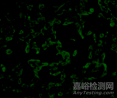 熒光顯微鏡先被PEDV感染的Vero細(xì)胞,熒光染料為FITC