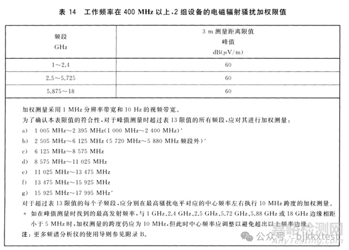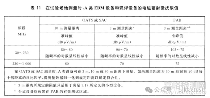 在30MHz~1GHz頻段內(nèi),3m的測(cè)量距離只適用于符合3.17所規(guī)定的設(shè)備如果EUT在放入全電波暗室的有效測(cè)試區(qū)域中,A類和B類設(shè)備可以在全電波暗室的3m標(biāo)準(zhǔn)距離下進(jìn)行測(cè)試。按照本標(biāo)準(zhǔn)使用FAR場(chǎng)地測(cè)量時(shí)僅適用于臺(tái)式設(shè)備。除EDM或弧焊設(shè)備的2組A類或B類設(shè)備,在FAR場(chǎng)地進(jìn)行30MHz~1GHz測(cè)量時(shí),應(yīng)補(bǔ)充150kHz~30MHz頻率范圍內(nèi)在()ATS或SAC騷擾場(chǎng)強(qiáng)的磁場(chǎng)分量的測(cè)量,見表10的腳注b和表12的腳注c。