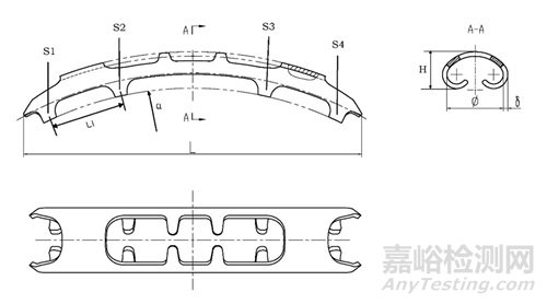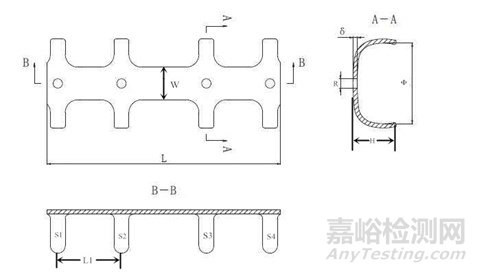 2.2提供產(chǎn)品各型號(hào)關(guān)鍵部位的結(jié)構(gòu)圖。在圖示中標(biāo)識(shí)關(guān)鍵尺寸信息及測(cè)量位置,例如記憶合金肋骨接骨板長(zhǎng)度(L)、高度(H)、厚度(δ)、環(huán)抱臂內(nèi)徑(Φ)、板孔直徑(R)、環(huán)抱臂分布(環(huán)抱臂間距L1和數(shù)量S1-S4等)、弧度(α)、寬度(W)等。明確產(chǎn)品各型號(hào)的關(guān)鍵尺寸及公差。注冊(cè)申請(qǐng)人可結(jié)合申報(bào)產(chǎn)品特點(diǎn)選擇關(guān)鍵尺寸參數(shù)進(jìn)行規(guī)定以充分表征產(chǎn)品結(jié)構(gòu)設(shè)計(jì)特征。