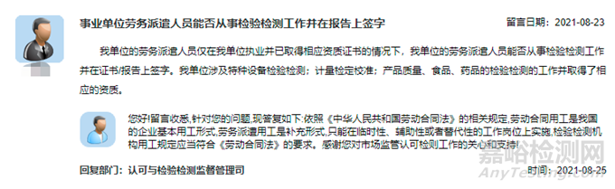 實驗室勞務(wù)派遣人員不能在報告上簽字