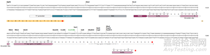 NcoI以及XhoI兩個位點均為5’端突出,引物設計可以包含突出部分,也可以不包含。本文選擇包含,選擇載體上20 bp片段作為同源臂添加至引物5’端。注意下游引物方向。