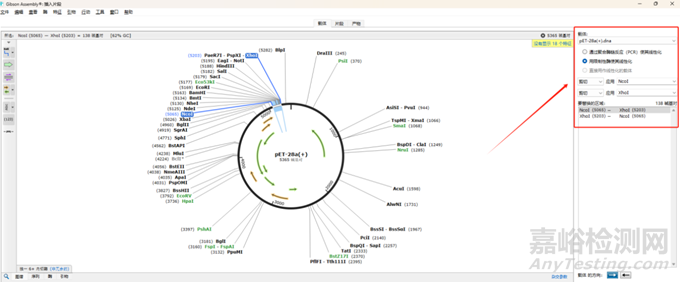 此時可以在產(chǎn)物界面看到組合完成的載體序列,切右下角的“組裝”按鈕激活。