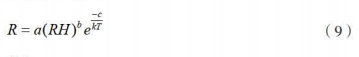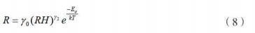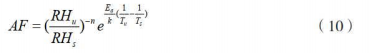 在廣義的Eyring模型的基礎(chǔ)上令S=log(RH),其中RH代表相對(duì)濕度,令m=0,且不考慮溫度濕度之間的相互作用時(shí),即γ3=0,模型可進(jìn)一步簡(jiǎn)化為: