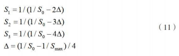 以選取三應(yīng)力進(jìn)行試驗(yàn)為例,設(shè)正常工作應(yīng)力上限為S0,最高工作應(yīng)力為Smax,S1,S2,S3為中間應(yīng)力,其計(jì)算公式如下: