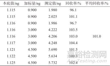 2.5 樣品加標(biāo)回收試驗(yàn)