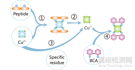 BCA是一種堿性的水溶性復(fù)合物,性質(zhì)穩(wěn)定。在其提供的堿性環(huán)境下,蛋白質(zhì)可以將BCA試劑中的Cu2+還原為Cu+,Cu+繼而與BCA試劑螯合,從而產(chǎn)生藍紫色的絡(luò)合物,在562nm波長處具有強吸收峰,通過測定吸光度,結(jié)合標準曲線即可得知蛋白濃度。BCA法因抗干擾性強、簡便準確,靈敏度高而得到廣泛應(yīng)用,但其也易受溫度、孵育時間的影響。