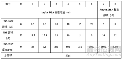 按照第二步所示表格加標準曲線測定孔,將待測樣本以適當體積加入并用PBS補足至20ul(待測樣本加入的量可按照經(jīng)驗值進行估計)。