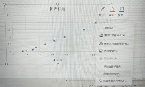 c.點擊散點圖上的任意一點,右鍵選擇添加趨勢線