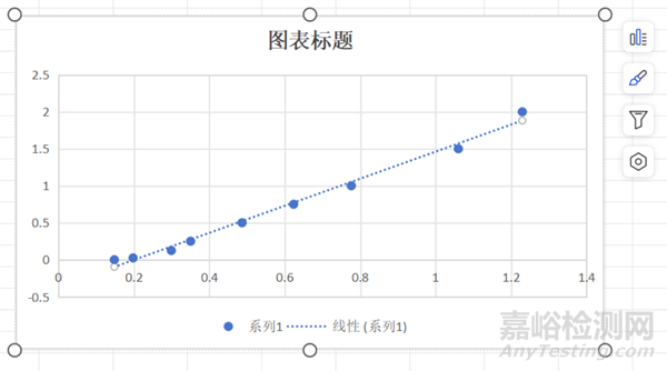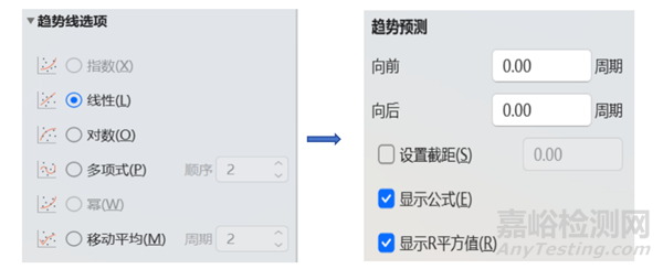 d.點擊設(shè)置,趨勢線選項選擇“線性”,勾選“顯示公式”和“顯示R平方值”,即可得到標準曲線;