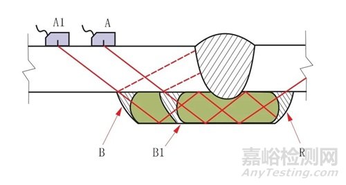 (2)從單面對側(cè)“A1”位置重復超聲檢測。