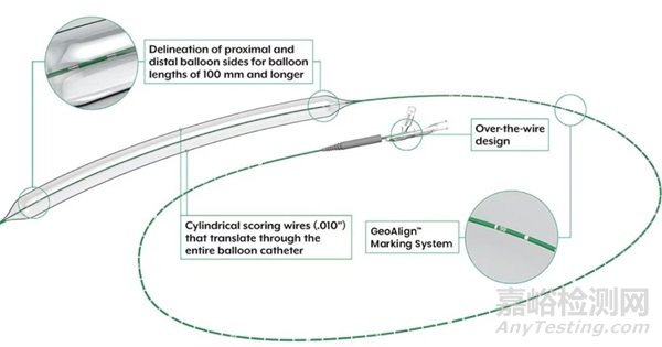 鉑標(biāo)記帶有助于球囊的可靠定位,位于球囊的“腰部”中心和肩部下方,以便在透視下清晰識(shí)別。