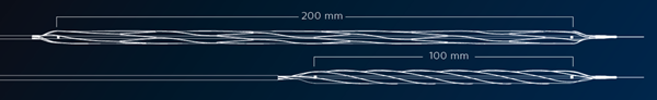 2.100 mm和200 mm的器械規(guī)格均采用了獨(dú)特的AngioSculpt刻痕技術(shù)
