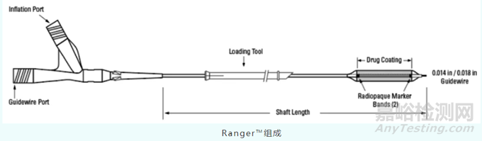 Ranger™紫杉醇藥物涂層外周球囊擴(kuò)張導(dǎo)管是一次性使用的無菌同軸整體交換型(Over the Wire, OTW)藥物涂層球囊,其藥物涂層是由紫杉醇和賦形劑乙酰檸檬酸三丁酯(ATBC)組成,紫杉醇在球囊表面劑量密度為2µg/mm2,增塑劑(ATBC)用為賦形劑,以便于在球囊擴(kuò)張時(shí)將活性成分(紫杉醇)從球囊遞送和轉(zhuǎn)移到動(dòng)脈血管壁。細(xì)胞學(xué)和動(dòng)物實(shí)驗(yàn)結(jié)果表明,紫杉醇具有明顯的抗增殖活性。紫杉醇本身具有疏水性、濃聚于動(dòng)脈內(nèi)膜的能力、對(duì)細(xì)胞抑制作用持久等特性,這些特性都有利于局部釋放后作用于動(dòng)脈內(nèi)膜減少再狹窄的發(fā)生。