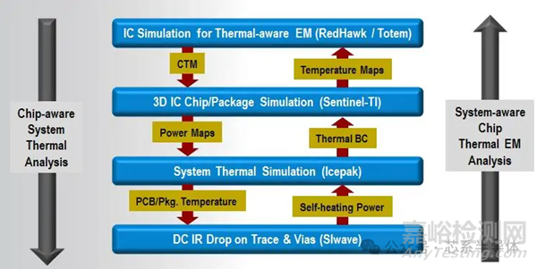 由于電遷移對溫度的依賴性,隨著器件的持續(xù)縮放和系統(tǒng)集成商在先進(jìn)封裝中不斷增加不同功能的小芯片,電遷移成為必須關(guān)注和規(guī)劃的重要失效機(jī)制。在先進(jìn)技術(shù)中,電流密度現(xiàn)在已經(jīng)非常接近最大允許密度,任何會導(dǎo)致溫度升高的因素都構(gòu)成威脅。多芯片系統(tǒng)的設(shè)計者需要理解溫度的影響并設(shè)計出能夠散熱的系統(tǒng)。