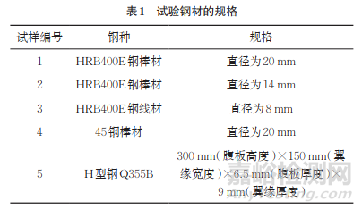 選取HRB400E螺紋鋼、45鋼以及Q355B鋼的合格試樣和不合格試樣進(jìn)行金相檢驗(yàn)。鋼材的規(guī)格如表1所示。