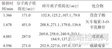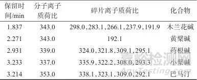 Tab. 2 Characteristic dye components and secondary fragment ions in Phellodendron amurense Rupr.