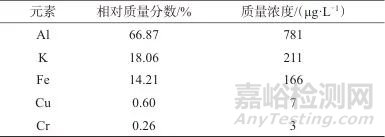 鋁、鉀、鐵、銅、鉻多元素混合標(biāo)準(zhǔn)溶液:各元素質(zhì)量濃度均為10 mg/L,美國安捷倫科技有限公司。