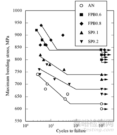 不同狀態(tài)Ti–6Al–4V樣品的S-N曲線