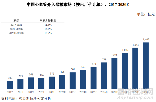 根據(jù)弗若斯特沙利文分析,按產(chǎn)品出廠價計算,2021 年我國心血管介入器械市場規(guī)模為 372 億元,預(yù)計到 2030 年市場規(guī)模將達(dá)到 1,402 億元,2021 年至 2030 年期間的復(fù)合年增長率為 15.9%。