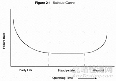 電子產(chǎn)品失效率隨使用時間變化的規(guī)律基本服從浴盆曲線,如下圖所示。