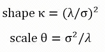 第二步:計算gamma分布的尺度參數(shù)和形狀參數(shù):