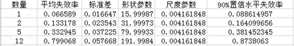 觀察4個系統(tǒng)置信上限失效率的結(jié)果,可以發(fā)現(xiàn),相對于平均失效率均有一定程度上的膨脹,相對于平均失效率更為保守了。