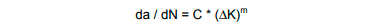 Paris冪率定律用于根據(jù)冪律表征疲勞載荷下的亞臨界裂紋擴(kuò)展,使用應(yīng)力強(qiáng)度因子表示如下: