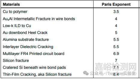 與因溫度循環(huán)和熱沖擊導(dǎo)致的疲勞失效模型基本一致,但主要關(guān)注于不同材料之間的界面的鏈接可靠性。