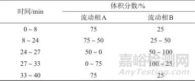 色譜柱:Luna C18 (2) 100A柱(250 mm×4.6 mm,5 μm,美國飛諾美公司);進(jìn)樣體積:10 μL;柱溫:30 ℃;檢測(cè)波長:甘草素為275 nm、甘草酸為251 nm、甘草查爾酮A為372 nm;流動(dòng)相:A相為0.05%磷酸溶液,B相為乙腈,流量:1.0 mL/min;洗脫方式:梯度洗脫,梯度洗脫程序見表1。